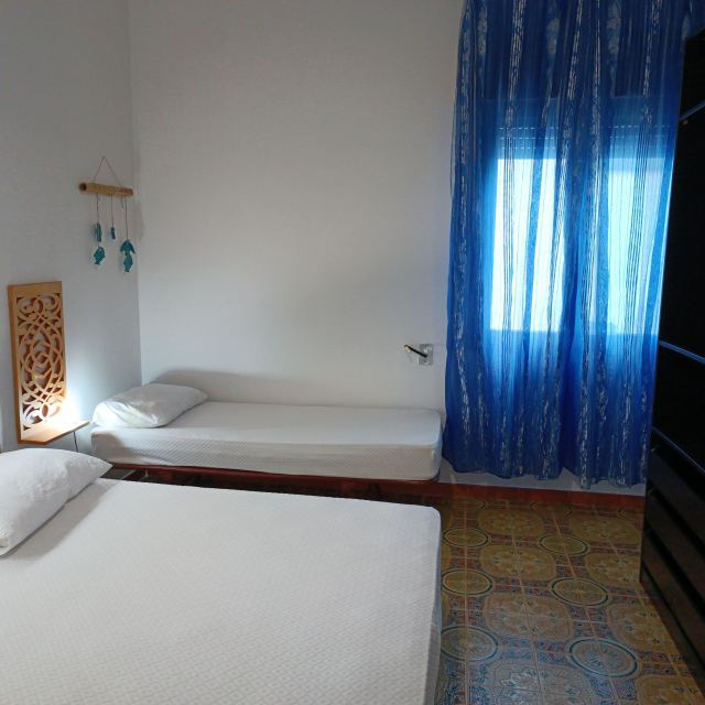 (10 metri dalla spiaggia di sabbia finissima e mare cristallino) e a 2 passi dal centro.