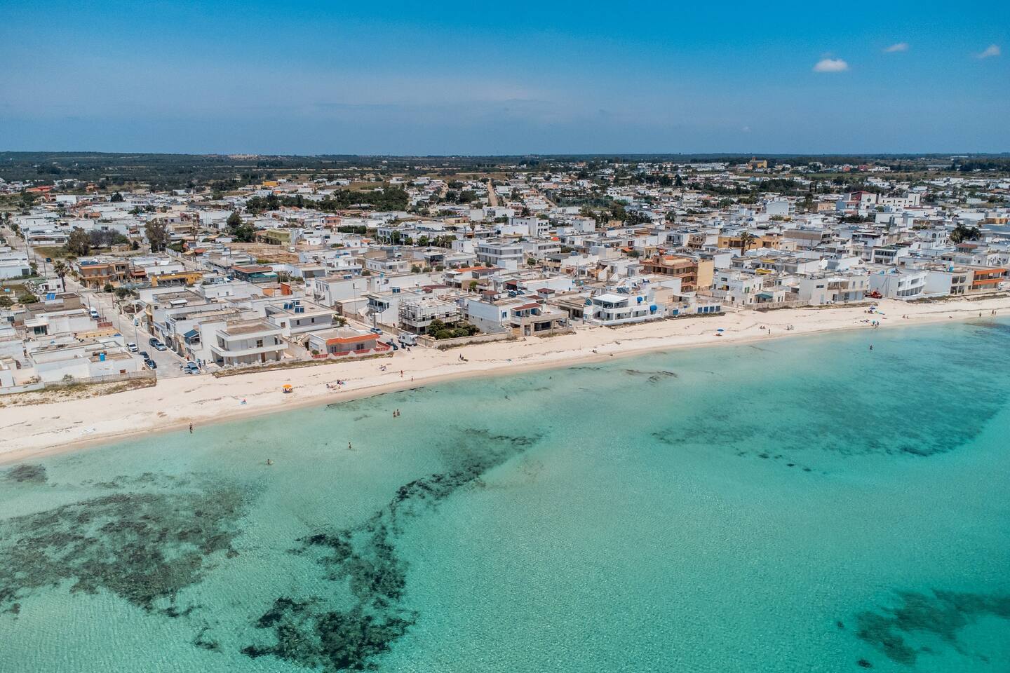 (10 metri dalla spiaggia di sabbia finissima e mare cristallino) e a 2 passi dal centro.
