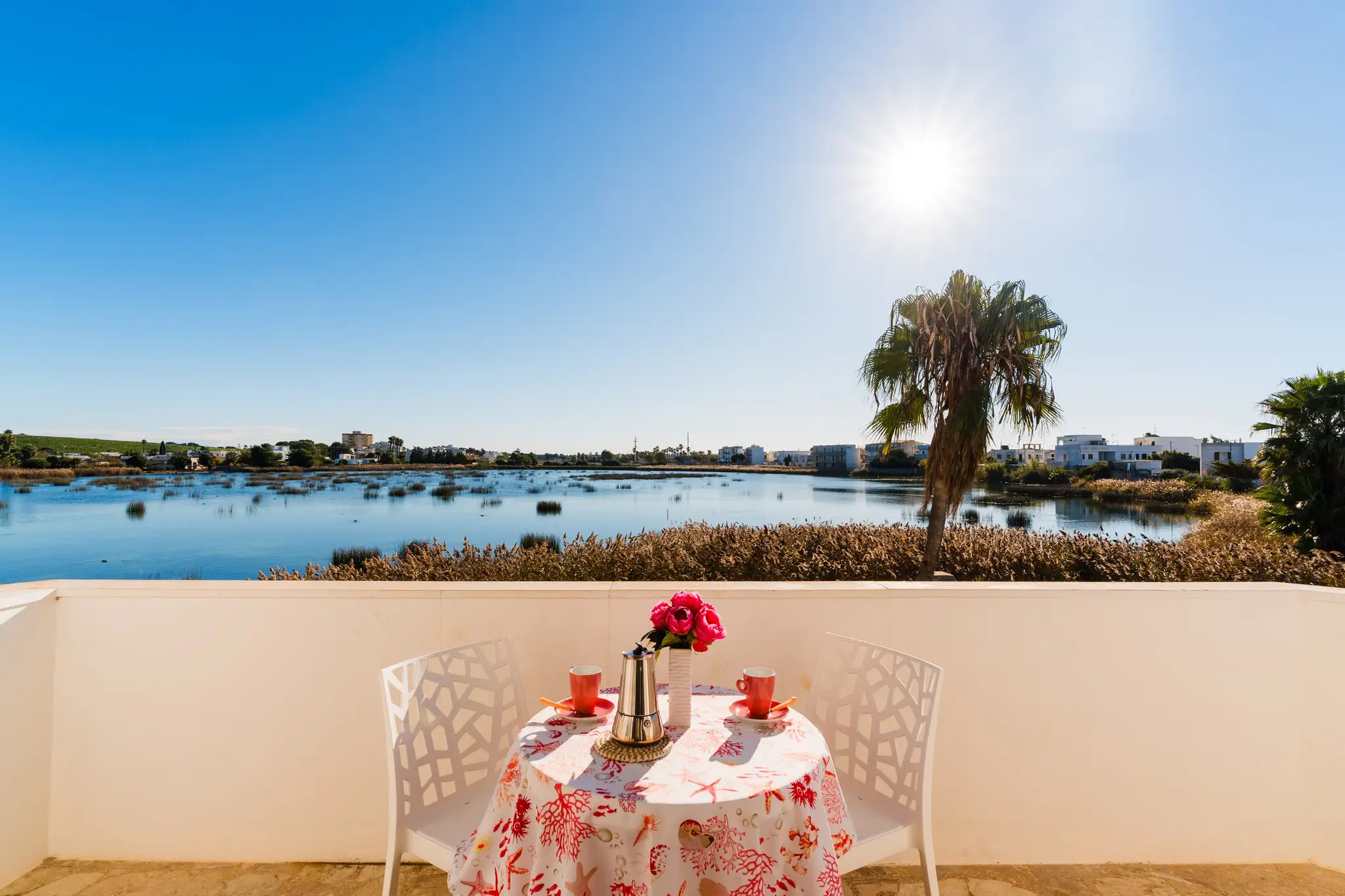 Si trova al primo piano di una villa con vista sulla laguna.