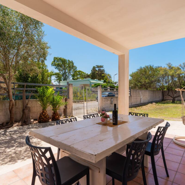 in giardino sono presenti tavolo e sedie per consumare pasti all’aperto,una comodissima e piacevole doccia esterna con acqua calda