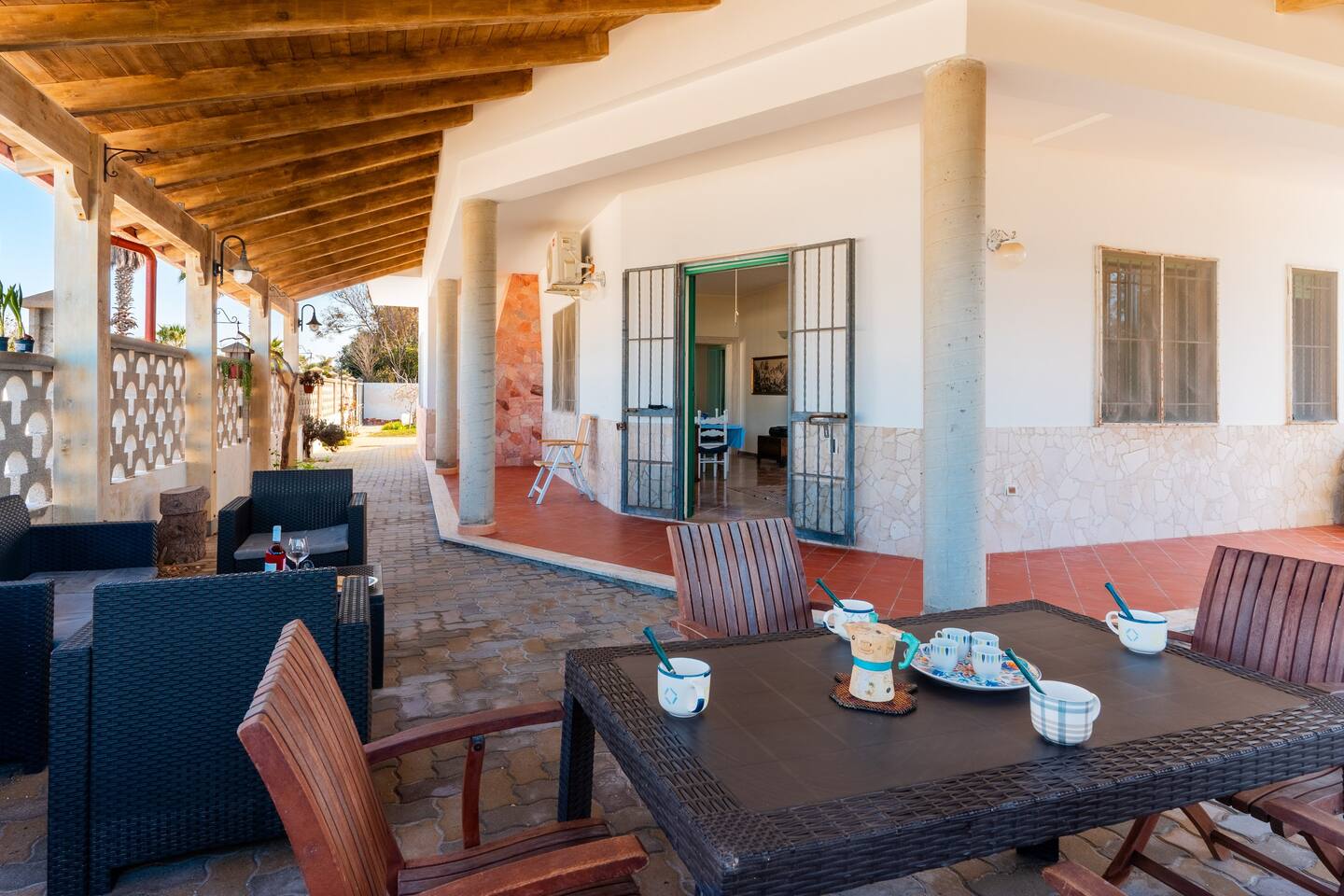 Villa Wanda, situata a Torre Lapillo, è una residenza di prestigio direttamente con accesso privato sul mare. Circondata da un ampio giardino, offre accesso privato alla spiaggia. Gli interni raffinati e le viste spettacolari creano un'atmosfera di lusso e relax. Ideale per chi cerca una vacanza esclusiva nella splendida cornice della costa salentina.