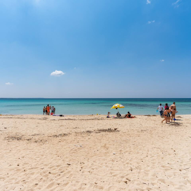 (10 metri dalla spiaggia di sabbia finissima e mare cristallino) e a 2 passi dal centro.