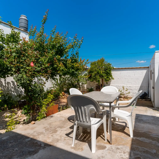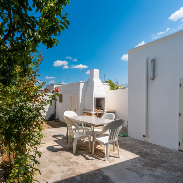 grande spazio esterno anche dietro con tavolo e sedie forno barbecue