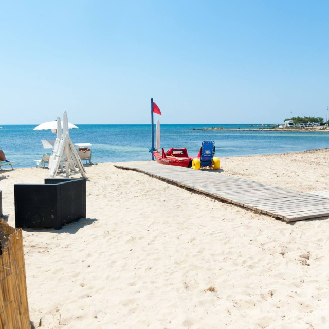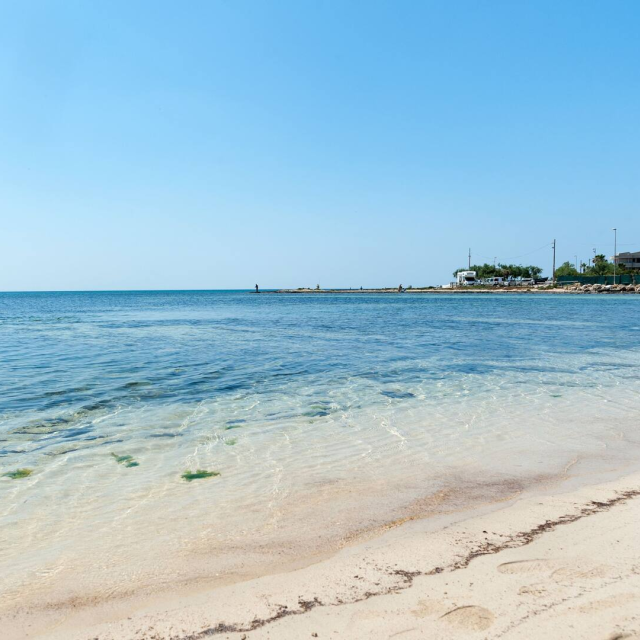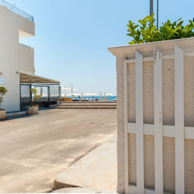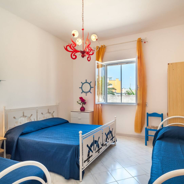 (5 metri dalla spiaggia di sabbia finissima e mare cristallino) e a 2 passi dal centro.