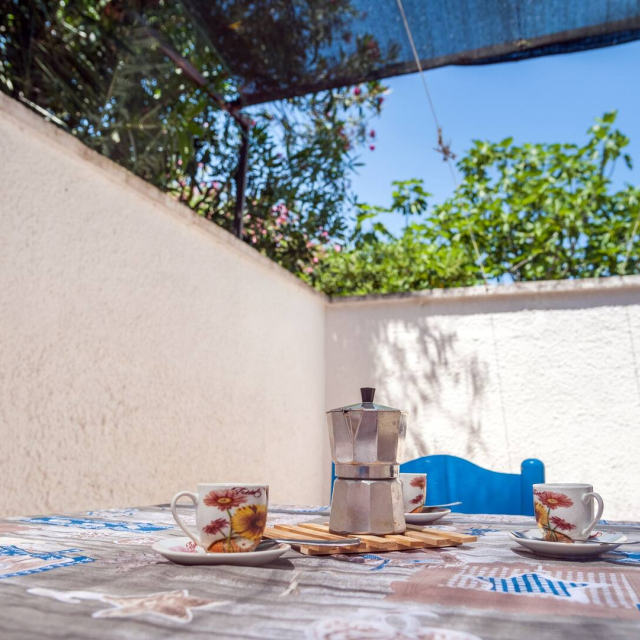 - secondo spazio esterno nel retro accollato alla cucina con tavolo e sedie per consumare pasti comodamente