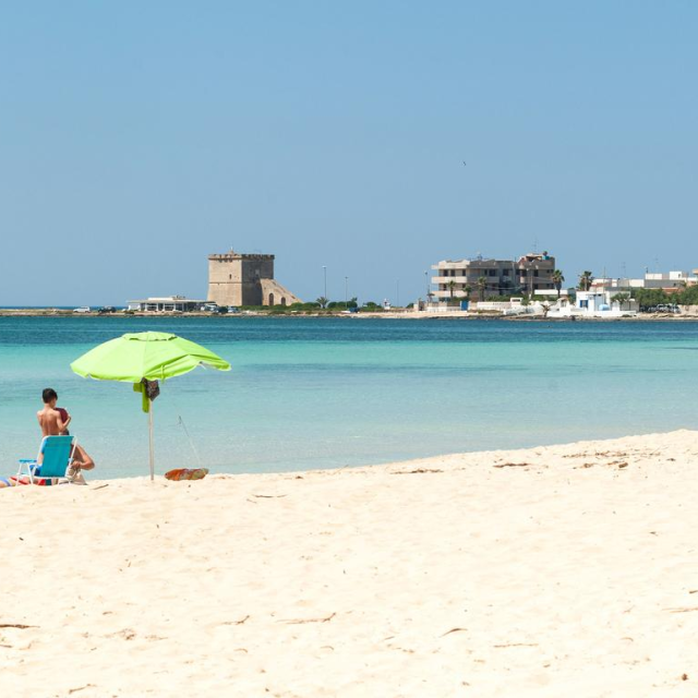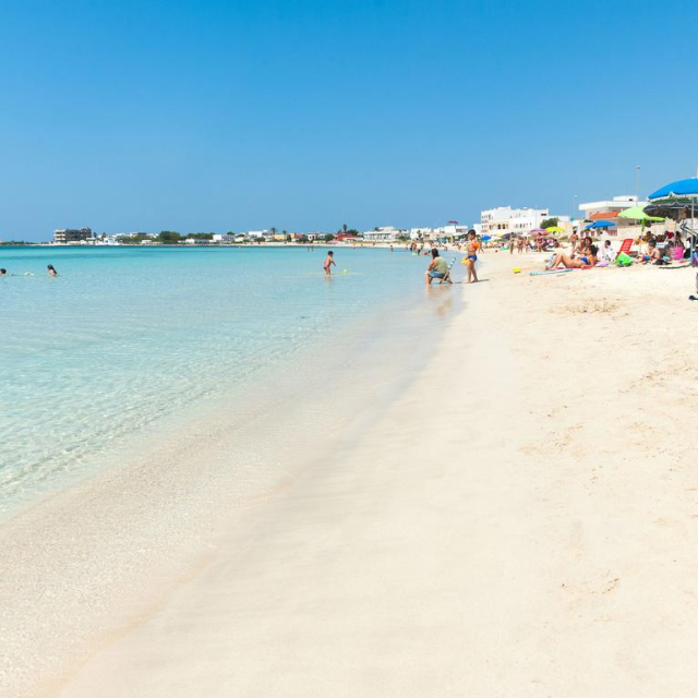 (10 metri dalla spiaggia di sabbia finissima e mare cristallino) e a 2 passi dal centro.