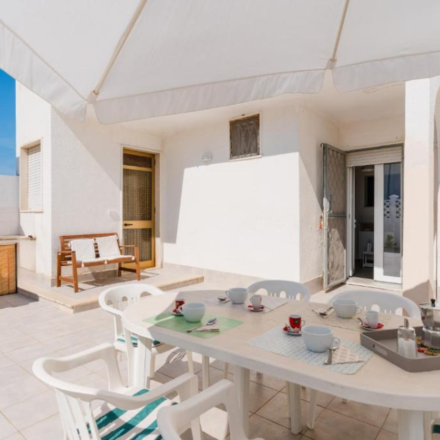 - spazio esterno avanti con sedie e tavolo per pranzare e cenare comodamente fuori compreso