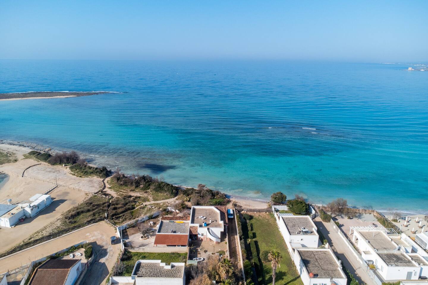 Villa Wanda, situata a Torre Lapillo, è una residenza di prestigio direttamente con accesso privato sul mare. Circondata da un ampio giardino, offre accesso privato alla spiaggia. Gli interni raffinati e le viste spettacolari creano un'atmosfera di lusso e relax. Ideale per chi cerca una vacanza esclusiva nella splendida cornice della costa salentina.