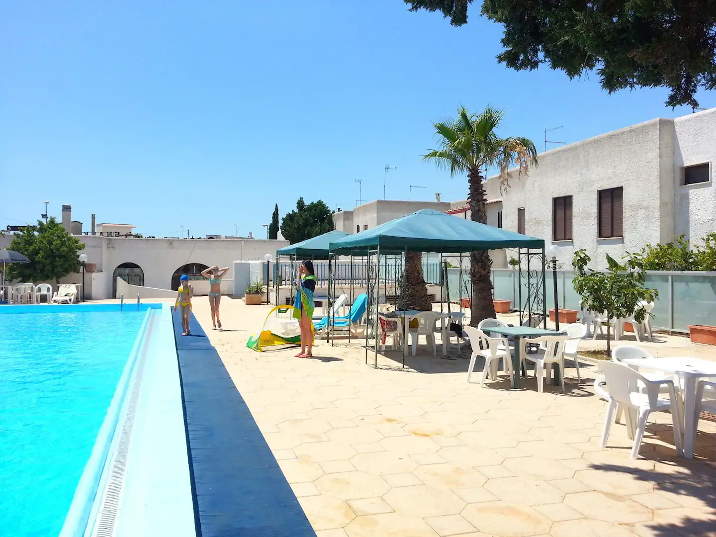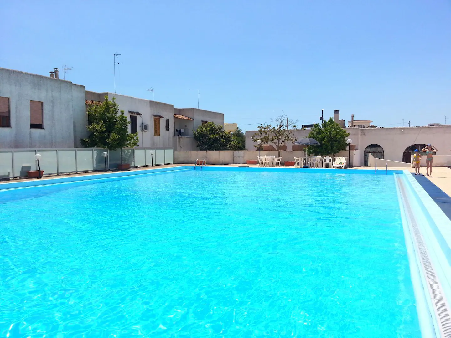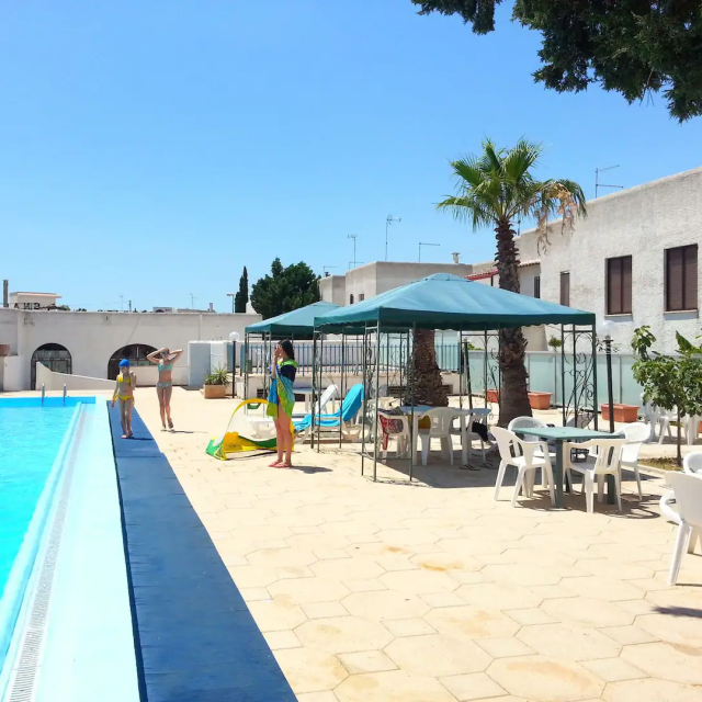 Possibilità di usare la piscina presente nel villaggio a partire dai primi giorni di luglio fino ai primi di settembre.