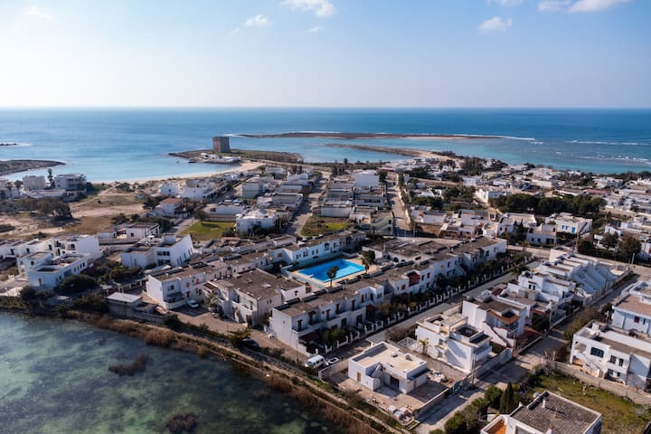 Villino Sabrina su due livelli zona giorno e zona notte a Porto Cesareo situato all’interno del villaggio Mediterraneo in via dei bacini scala di furno a 200 metri dai più importanti lidi della zona, Lido le dune, Lido Tabù, ecc…