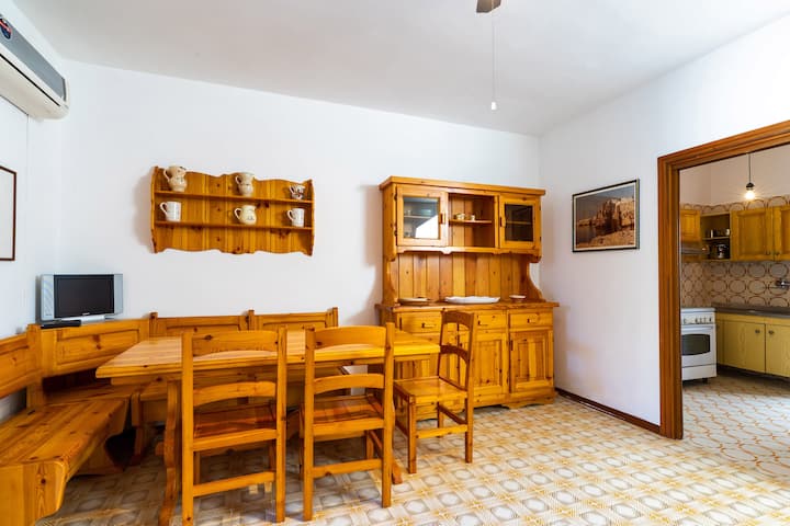 Ampia sala da pranzo climatizzata con divano letto doppio e bagno di servizio